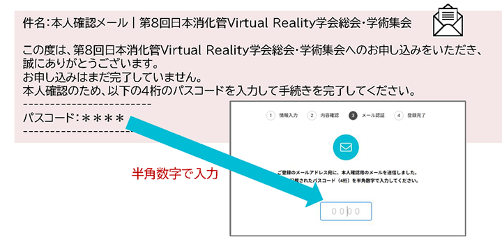 お申し込み内容を送信後、ご入力いただいたメールアドレス宛に届く4桁の認証コードを入力し、